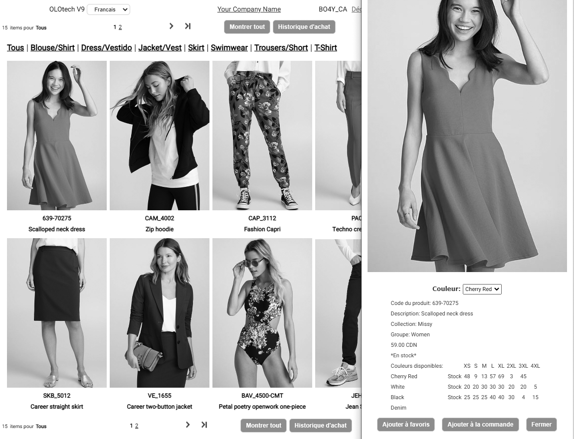 Le catalogue permet aux détaillants de passer leur commande directement. Le prix et les produits affichés peuvent varier d'un détaillant à l'autre. L'aspect du Catalogue (image, texte) peut être modifier dans la section d'administration.