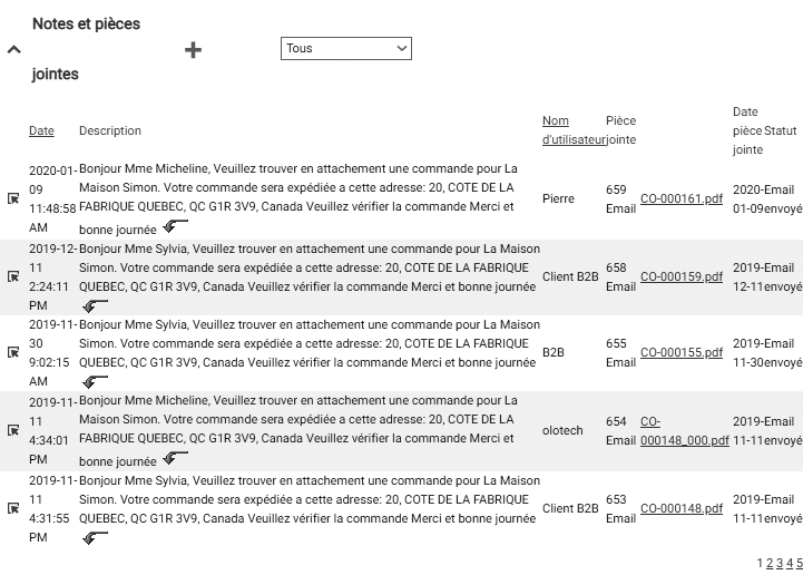 Tous les communication sont conservé dans Notes et pièces jointes.