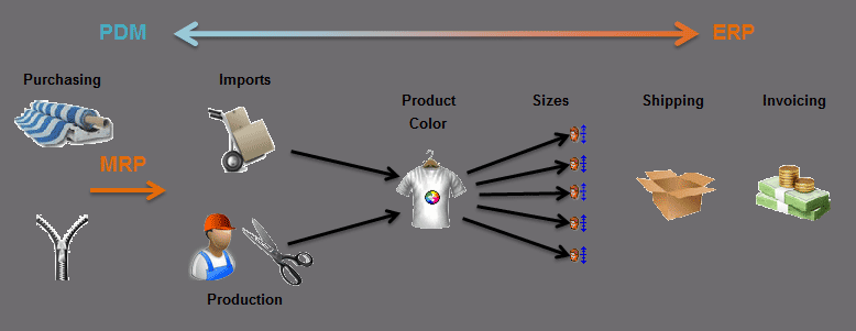 In addition to producing comprehensive Tech Packs, the PDM instructs the MRP (Material Resource Planning), thus both automating and simplifying Purchasing and Production. Any modification of color, fabric/component and/or labour, are instantly reflected in Purchase orders and/or Cutting slips. All information: Bill of material, Cost Sheets, Library / Inventories of Fabric and Components, Die Lots, Measurement Sheets, Technical Drawings and Picture are live.